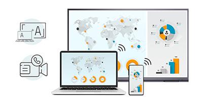 • El sistema de pizarra interactiva incorporado permite realizar anotaciones y compartir mediante código QR.